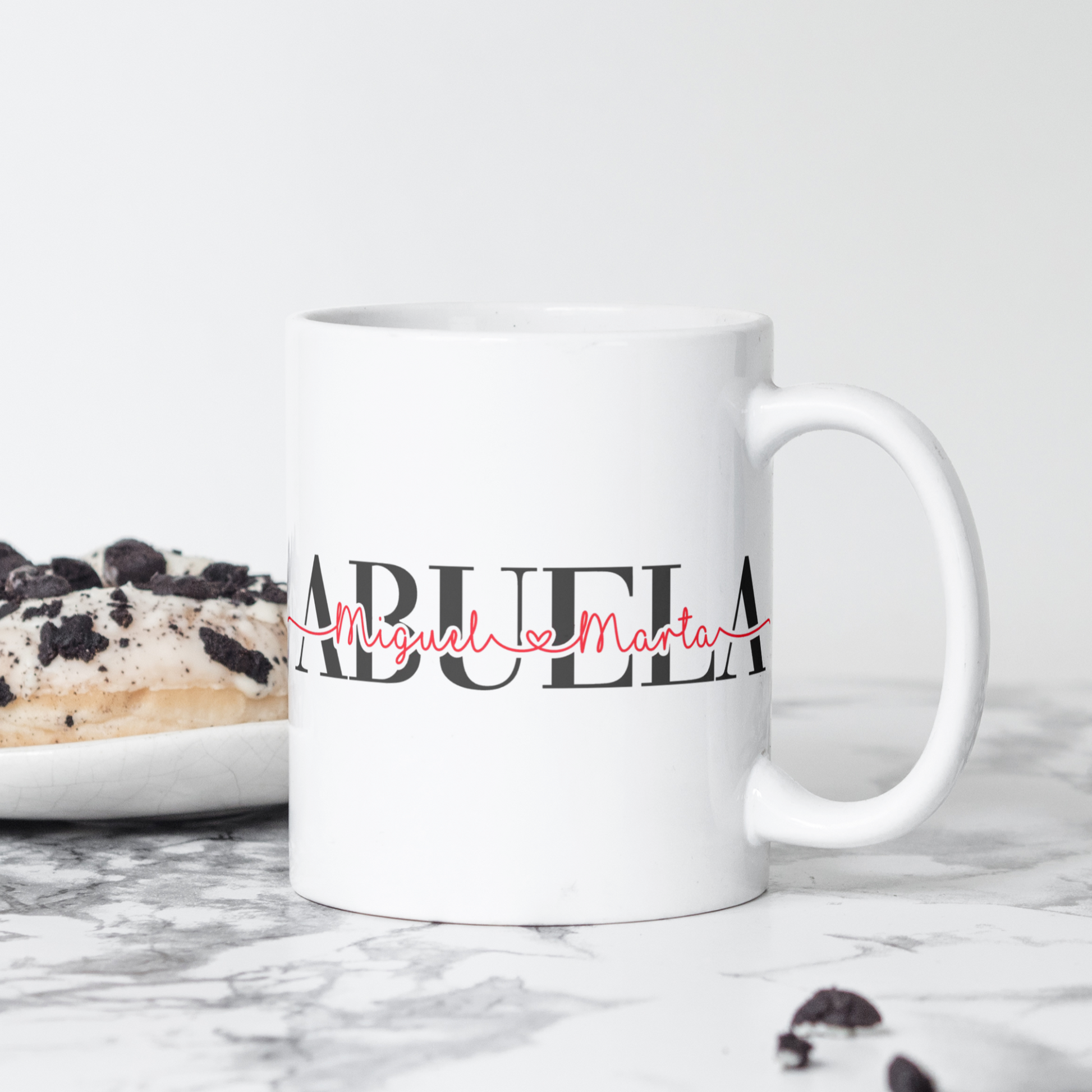 La palabra abuela está estampada en negro y los nombre en rojo, pero si quieres cambiar los colores, déjamelo en las notas del pedido o abre la cajita de chat :)
